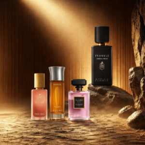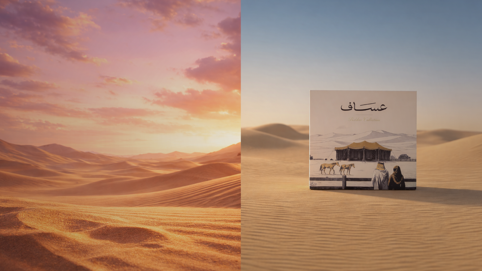 Luxury fusion of rich rose and warm oud, inspired by the golden dunes at sunrise. Opulent, velvety, and timelessly elegant.