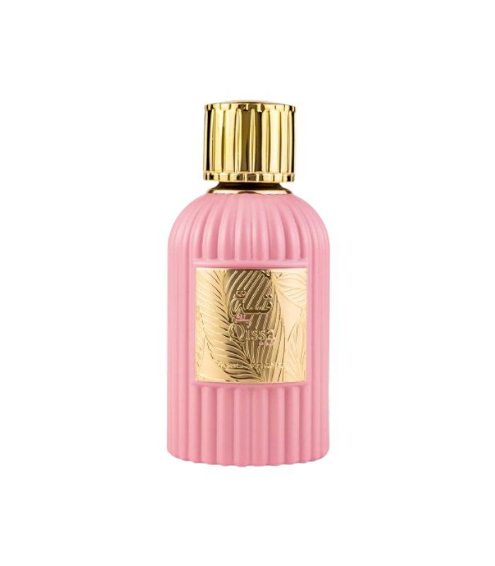 Introducing Qissa Pink, a fragrance that weaves a captivating tale of sweetness, florals, and woody sophistication. Immerse yourself in this olfactory narrative that unfolds from a fresh and fruity beginning to a warm and enveloping conclusion.